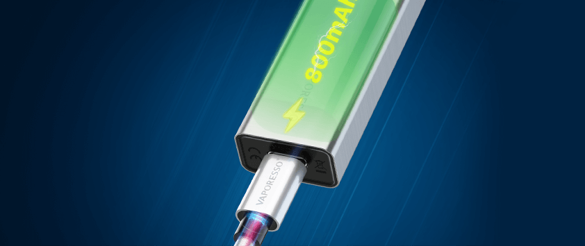 Питание Vaporesso XROS Pod Kit реализовано при помощи встроенного аккумулятора емкостью 800 мАч, что для такого компактного устройства очень неплохой показатель (автономность обеспечена). Заряжается аккумулятор при помощи разъема USB Type-C, расположенного на нижнем торце девайса, током 1А (время полной зарядки составляет 40-50 минут).